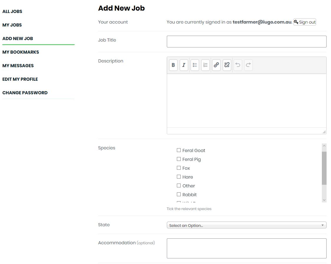 The ‘Title’ of your job post should be very specific. For example, if you need help with a particular pest such as rabbits, you should type in ‘Rabbits’. The ‘Description’ section allows you to expand and enter as much information as you want. Include all the relevant information that you want to tell a prospective helper about the job. If your job requires a damage mitigation permit you should make reference to this and include the permit number in this section.